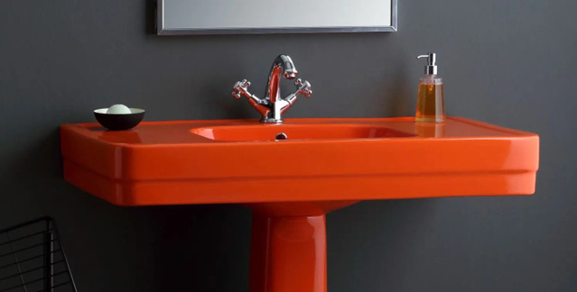 retro wastafel van 100x45cm te bestellen met 1, 3 of zonder kraangaten.