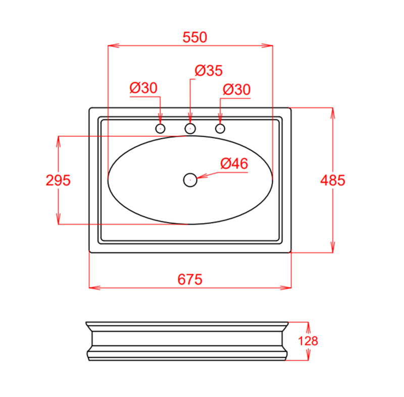 Klassieke opbouw wastafel "Majerling" met 1 of 3 kraangaten