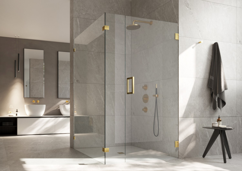 Douchecabine met mat brons beslag op aanvraag