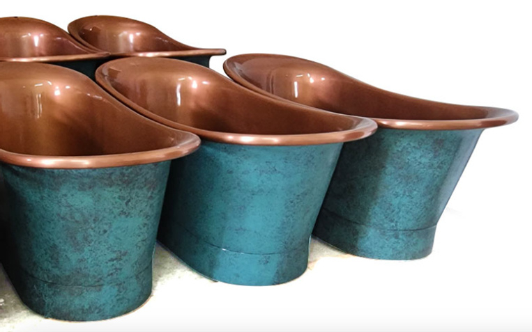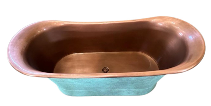 Koperen bad met hoge plint "MacMargaret" met groene oxidatie en verouderd koper 188cm , KSB0085