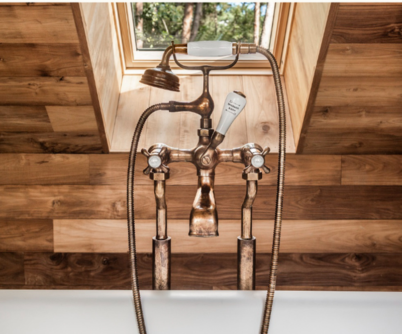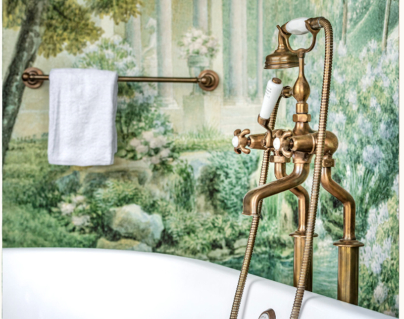 klassieke badkraan met vloerbuizen in verouderd messing van Kenny & Mason
