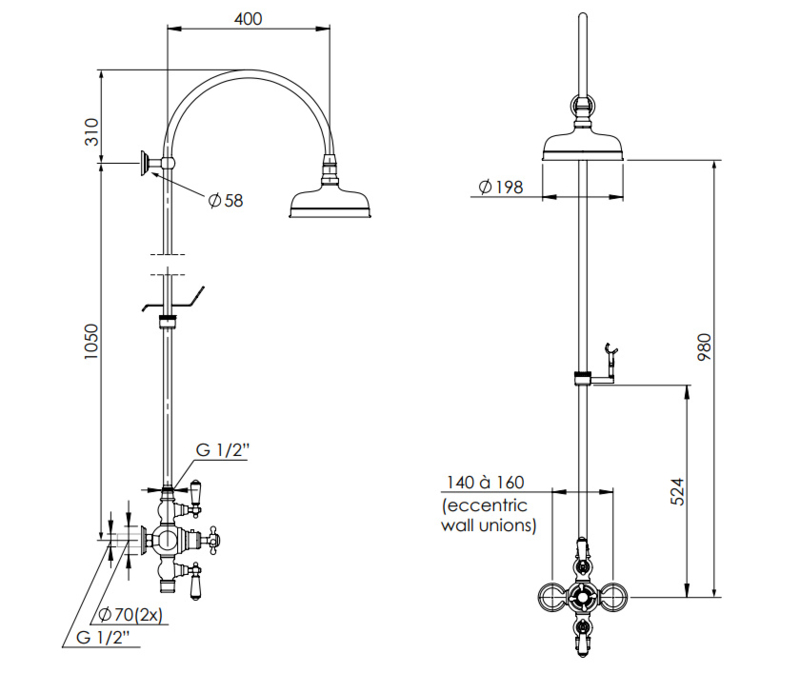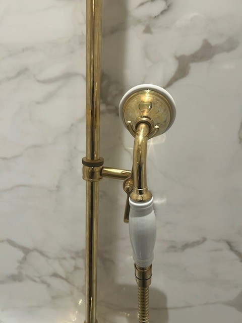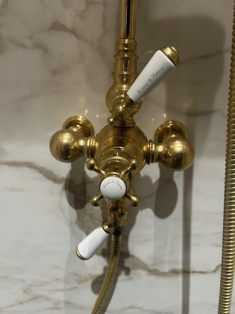Klassieke douche thermostaatkraan TH006 in verouderd messing van Kenny & Mason