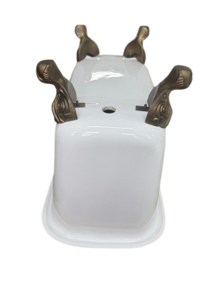 Klassiek bad op pootjes 123cm lang. Dit solide retro bad is gemaakt van mineral stone en weegt 75 kilo .