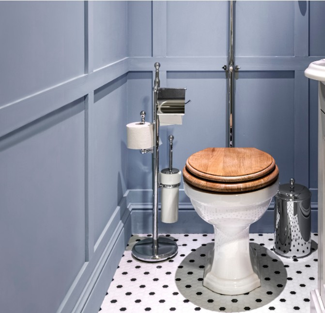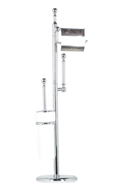 Klassieke vrijstaande toiletborstelhouder met reserverol en toiletrolhouder chroom
