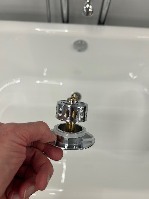 Inclusief verchroomde overloopset met ketting en plug. Exclusief badsifon en slang.