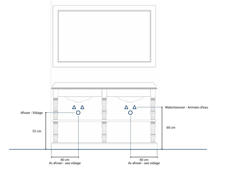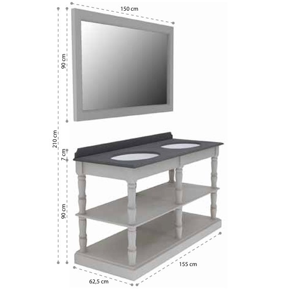 Klassiek meubel Orleans 155cm met dubbele wasbakken en natuurstenen bovenblad