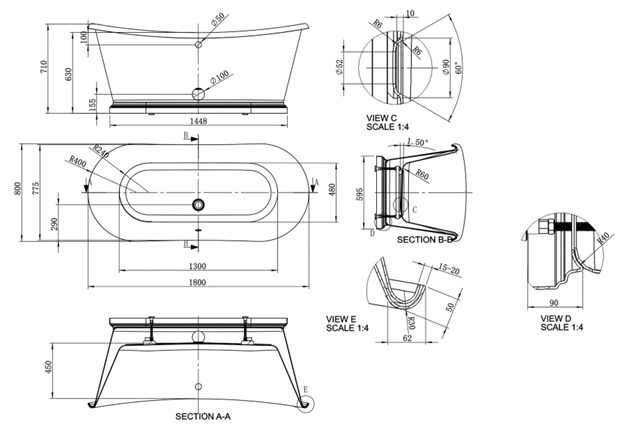 KSB0018, Boat bad 182cm, wit, Klassiek Vrijstaand Bad