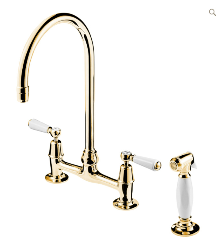 Barber Wilsons Keukenkraan BW1010 chroom , met witte hendels, hartmaat 20,5cm