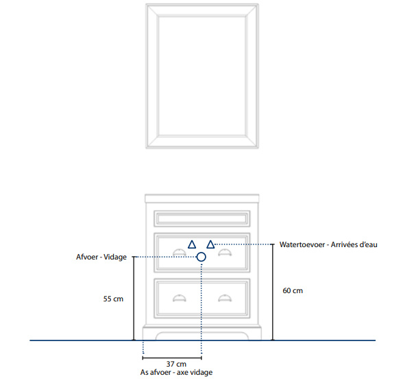 - Wastafel: Keramische wastafel met keuze uit 1 of 3 kraangaten, opgeven bij bestelling