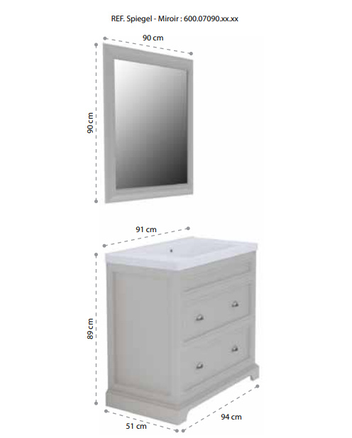 - Optioneel: Bijpassende spiegel in dezelfde kleur