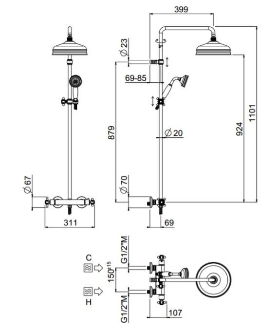 Deze nostalgische douchekraan is ambachteljk gemaakt van loodvrij messing, voorzien van een dikke laag nikkel en daarover een stevige chroom laag.