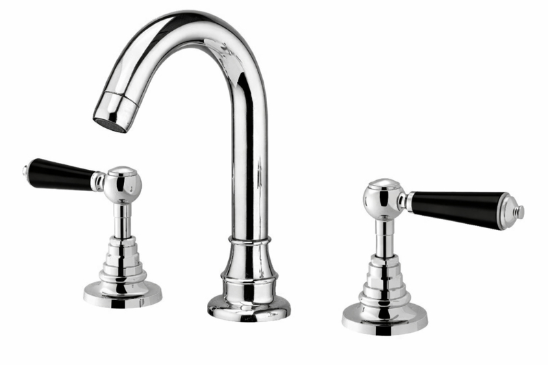 Macbath Brassware MB2109BL – Nostalgische Driegats Wastafelmengkraan met Verhoogde Uitloop en zwarte hendels – Chroom