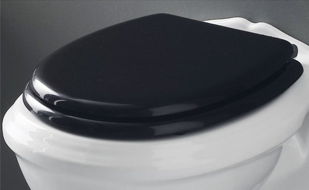 Klassieke toiletzitting glans zwart met verchroomde scharnieren van Simas Old England, Serie Arcade
